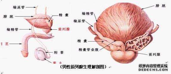 射精管:主要功能是射精,射精管壁肌肉较丰富,具有强有力的收缩力,帮助精液射出,同时时精管位于尿道峭位笆上的开口,既小又狭窄。以射精时的应有压力,另一·方面精液通过狭小开口,似乎有一种"挤出"感,通过神经反射,引发出射精的欣快感,从而达到性高潮期。