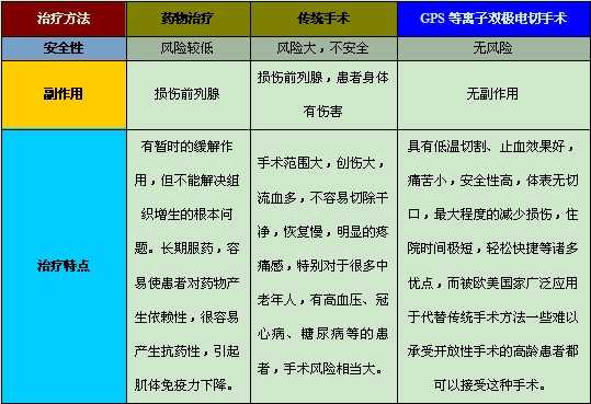 据了解,目前对于前列腺增生的治疗方法很多,有药物治疗,传统手术治疗,GPS等离子双极电切手术微创治疗等,经临床验证,重庆曙光男科医院引进的 GPS德国等离子双极电切系统是目前治疗前列腺增生蕞有效,副作用蕞小,安心性蕞高的方法,特别对于高龄患者,或者体质较弱的人都适合。