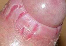 2、可能会导致性功能障碍:包皮裂开期龟头部性感应神经处于敏感期,加之炎症的损伤,使得在性生活中易早泄,长期可导致阳痿的发生。而且包皮萎缩粘连形成的肥厚性狭窄环,阴茎勃起的时候受到向后牵拉压迫会导致勃起不坚等。