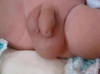 3、睾丸鞘膜积液:常见,鞘膜常无明显病变,但囊内充满液体 ,阴囊呈球形或梨形。婴儿时期约1.75%在刚出生时有睾丸鞘膜积液,1/4为双侧性,多数随小儿生长逐渐消退。