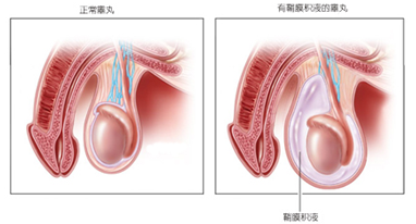 2、睾丸长期浸泡在鞘膜积液中,在压力下造成代偿性增大,精索增粗,影响正常发育。