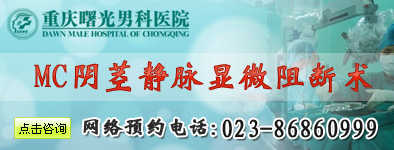 正常情况下,阴茎勃起是指有性冲动时,在神经内分泌调节下,阴茎海绵体内动脉血液灌注量急剧增加,从而阻断静脉回流使阴茎海绵体内血液充盈而诱导勃起,终完成满意的性生活。静脉性阳痿主要是由于海绵体静脉瓣回流不能有效关闭,即有静脉漏所致。因此,MC阴茎背深静脉修复术的目的就是增大血液回流的阻力,阻滞生殖器的静脉回流,从而实现满意的性生活。MC阴茎背深静脉修复术是从欧美引进的治疗阳痿前沿的男科微创技术,行业内男科学会重点建议技术。重庆曙光男科医院于2008年7月专门派手术医生到欧洲男性疾病研究院学习进修6个月后成功引进,为数千阳痿患者解决了病痛。