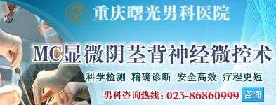 总之,早泄危害严重,但是同时它并非不治之症,只要注意调节,积极治疗,是可以得到改善的,重庆曙光男科医院的“MC显微MC显微阴茎背神经压搾术”是目前治疗早泄有效的方法!